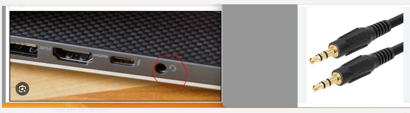 audio jack, plugs into dock station or there should be a jack port on hp laptop