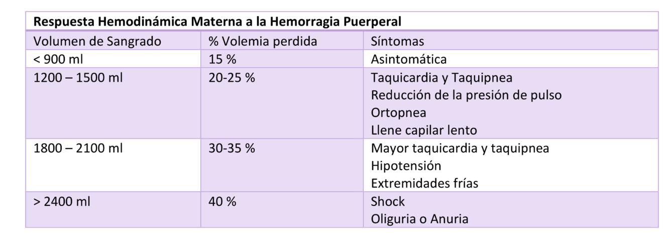 - PÉRDIDA SANGUÍNEA >1.000ML EN RELACIÓN AL PARTO Y SIGNOS CLINICOS O SX HIPOVOLEMA