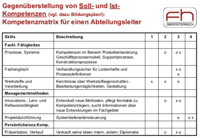 Kompetenzmatrizen stellen Fähigkeiten einzelner MitarbeiterInnen oder von Teams (s. nächste Seite) dar. Unter Kompetenzen versteht man dabei – im Unterschied zu Qualifikationen – keine absolvierten Ausbildungen, Seminare usw., sondern das, was MitarbeiterInnen können (z. b. Verkauf, Projektdurchführung).