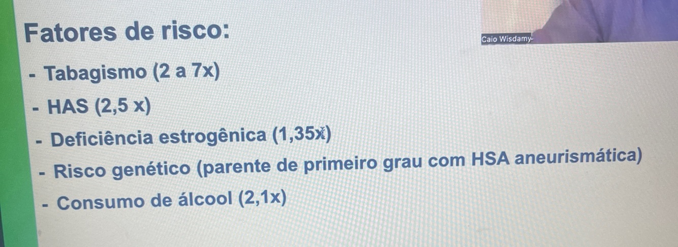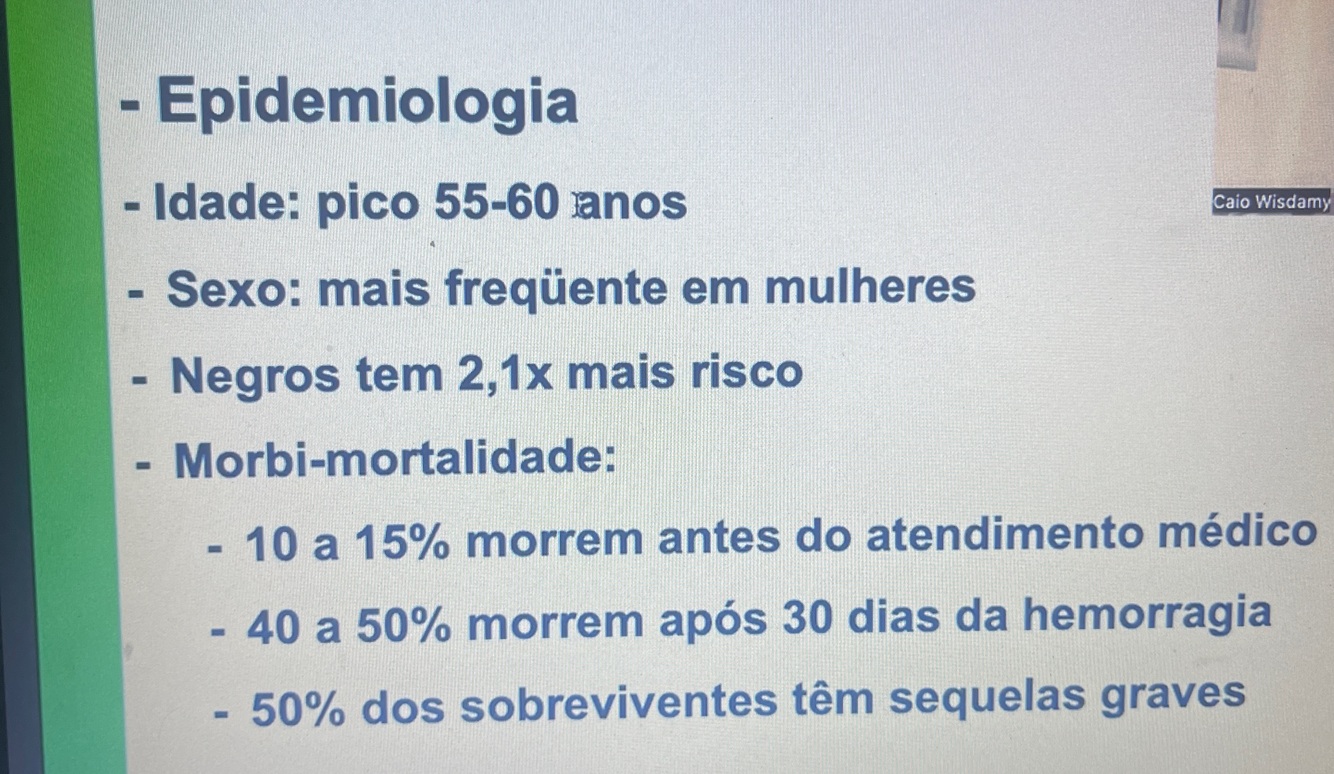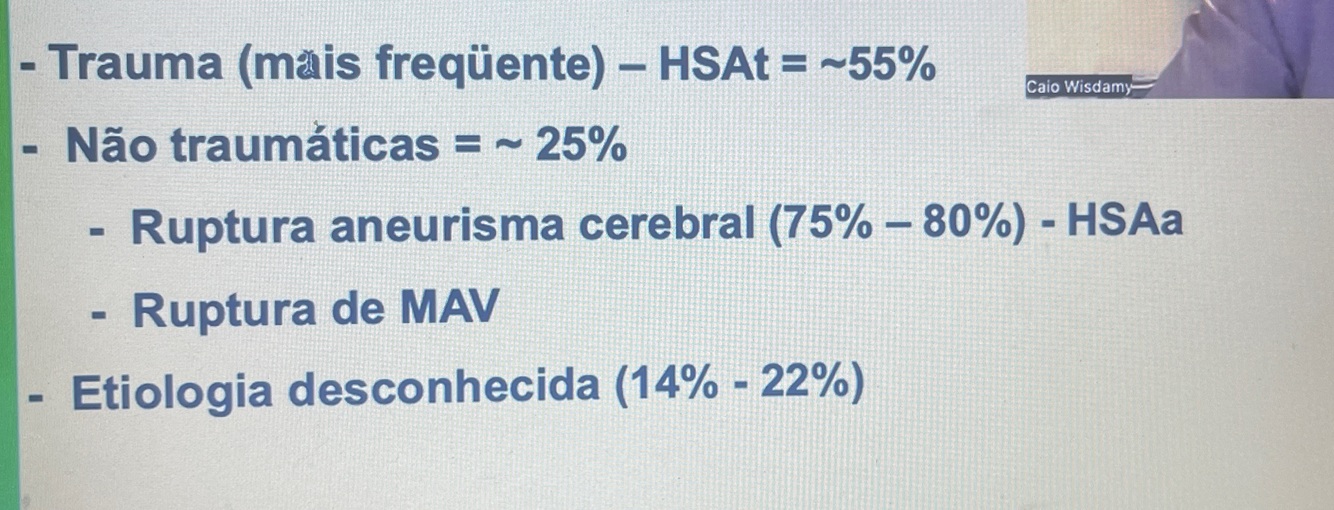 Hemorragia subaracnóideo geralmente está relacionado a trauma e rompimento de aneurisma sacular