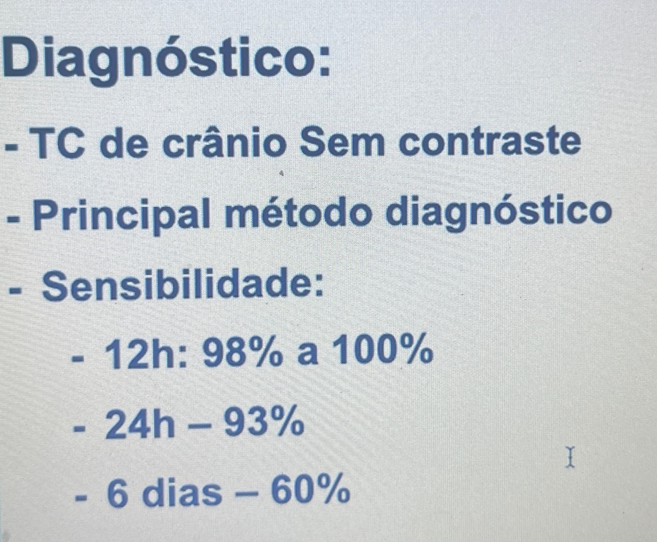 Precisa de só um critério diagnóstico, logo a sensibilidade é muito baixa