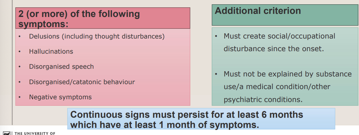 Which symptoms must one have to be diagnosed with Schizophrenia?