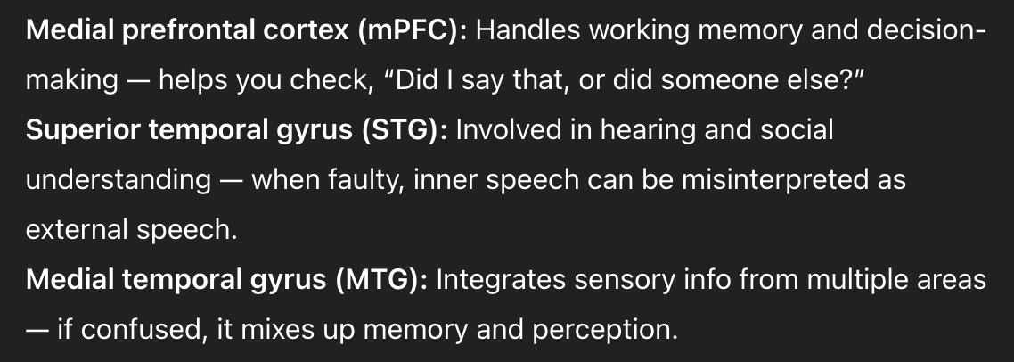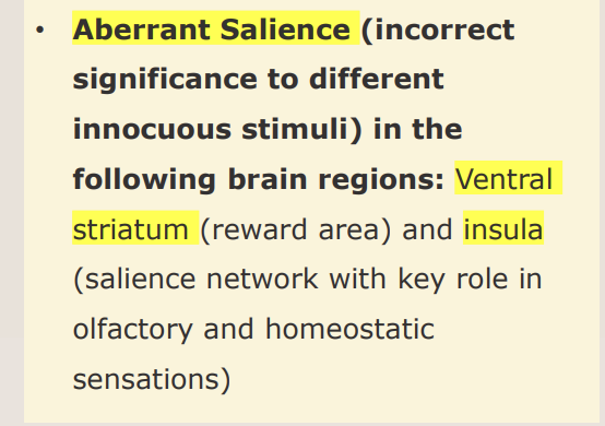 VS: brain’s reward/motivation area - normally tells you what is important or rewarding however in schizophrenia, it starts flagging irrelevant stuff as “rewarding” or “important”
