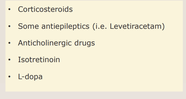 List 4 classes of medications associated with psychotic symptoms.