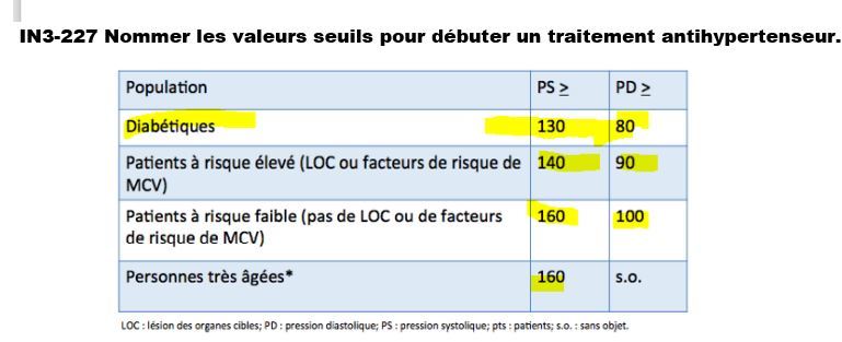 quels sont les valers seuils pour débuter un traitement hypertenseur