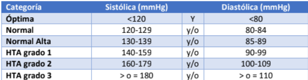 niveles de presión arterial