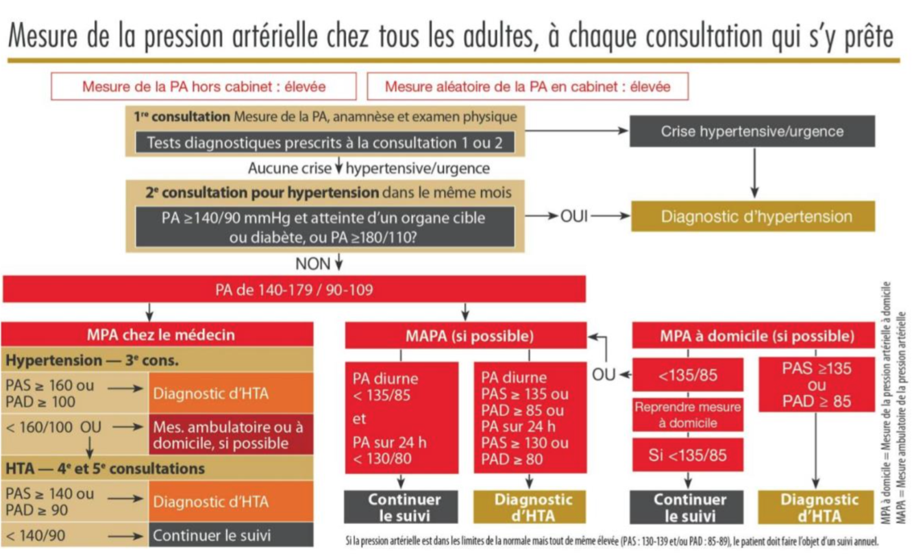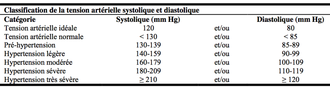 Lorsque systolique et diastolique se retrouvent dans des catégories différentes, la classe supérieure est retenue.