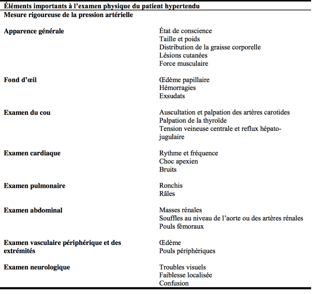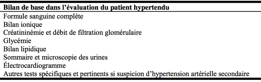 Si HTA essentielle, pas nécessaire d’entreprendre des examens de laboratoires extensifs, mais attention spéciale si suggestion de HTA secondaire.