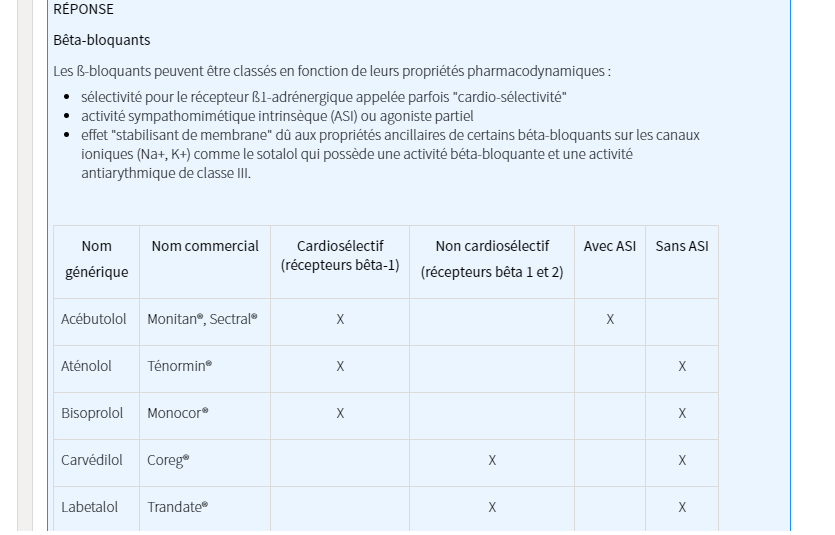 leur CARDIO SÉLECTIVITÉ ( sélectivité pour B1)
