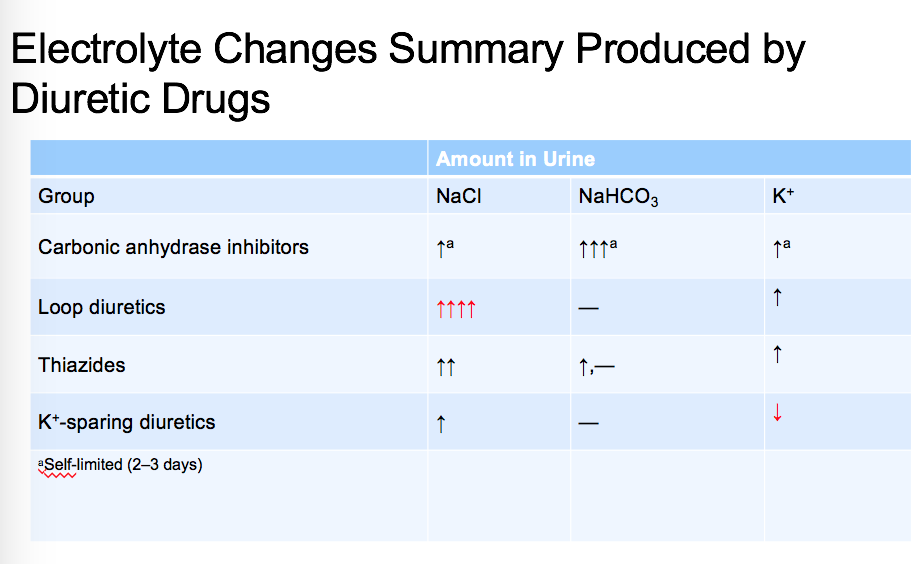 Which group of diuretics has the most amount of NaCl in the urine