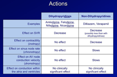 •Think of them on a spectrum from action on the heart to action on peripheral arterioles. (dihydropyridines to nondihydropyridines)