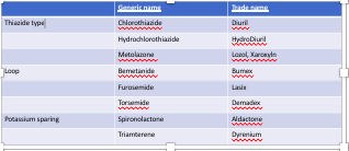 thiazide most used for HTN, loop more short-term, can swap to K+ sparing if loop causing prob