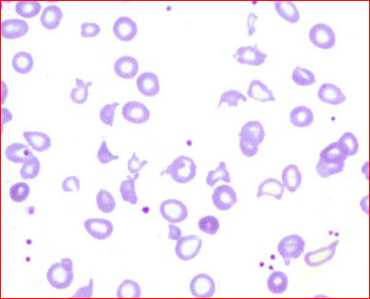 Microangiopathic Hemolytic anemia (MAHA): shearing off of red cell fragments resulting in schistocytes by passage through fibrin mesh at increased pressures within the lumen of arterioles