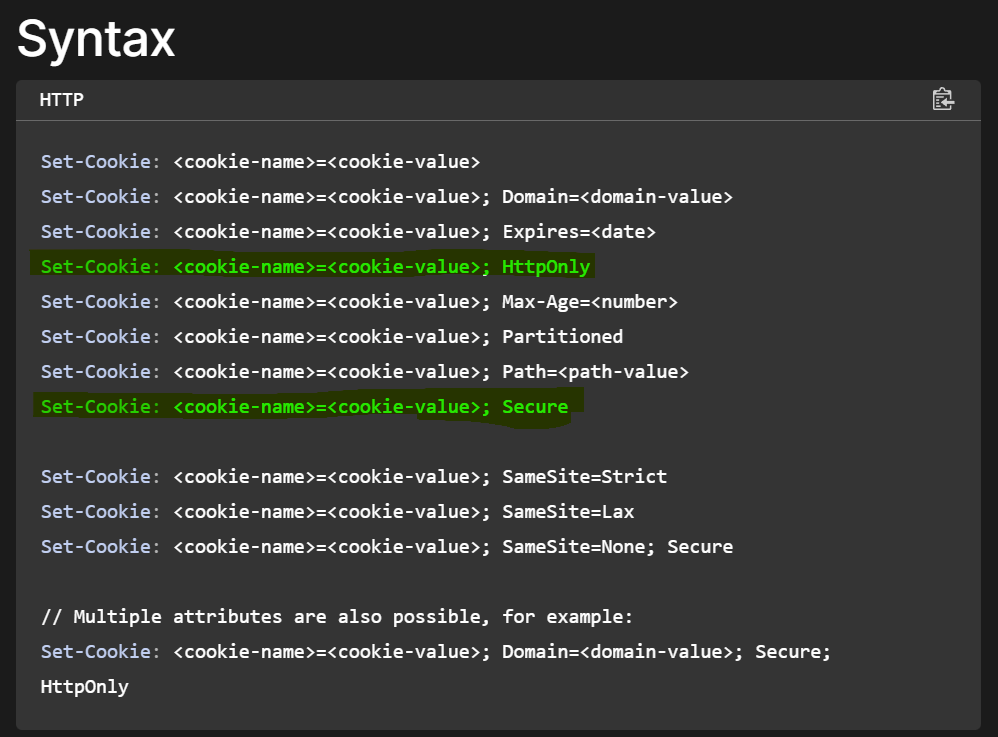 Set-Cookie: <cookie-name>=<cookie-value>;</cookie-value></cookie-name>