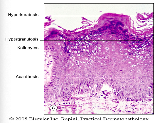 Papillomatos: Vågformig proliferation av epidermis.