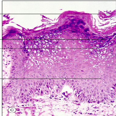 Ortokeratos: Kärnfritt stratum corneum (normalt).