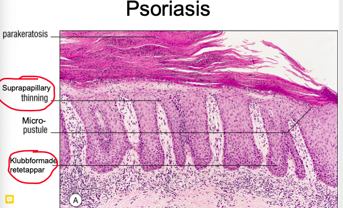 Histologi: Klubboformade retetappar och hyperparakeratos.