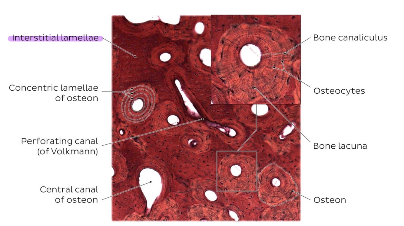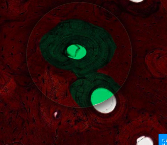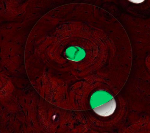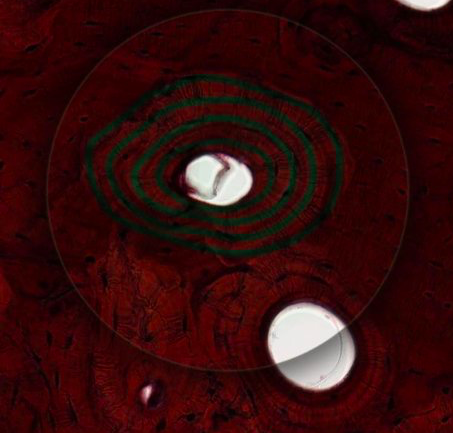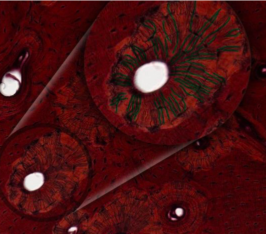 Conexiones laterales de vasos sanguíneos que pasan a través de Havers