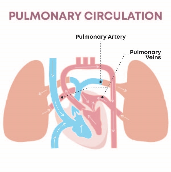 Pulmonary circuit: Moves blood between the heart and the lungs.
