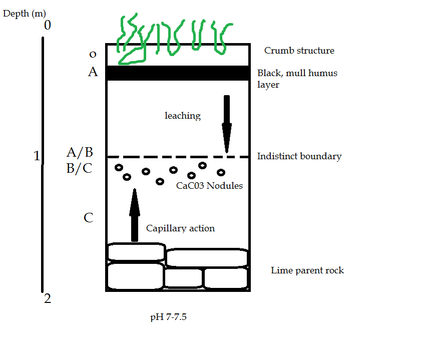 There is no B horizon, as the low rainfall means there is little leaching which creates the B horizon