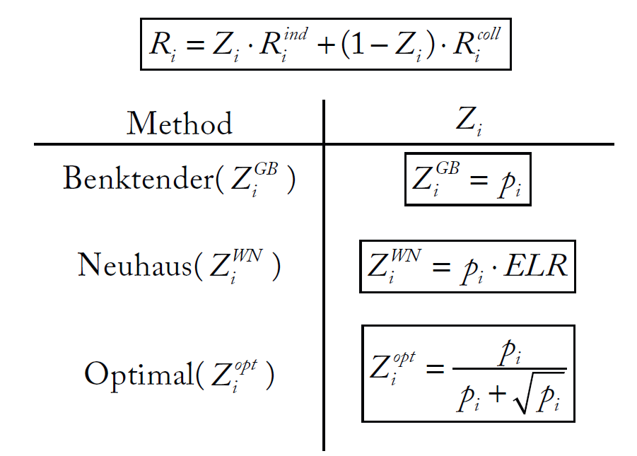 Rcoll – Ignores cumulative paid claims (Ci) and places 100% credibility on