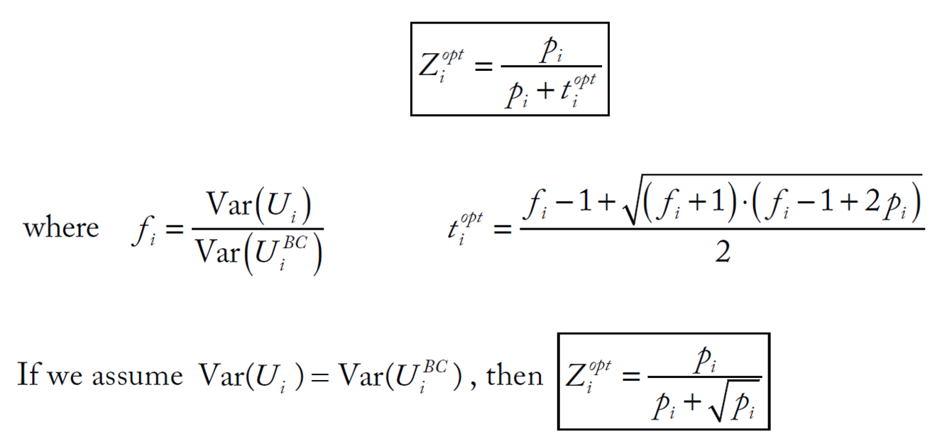 Explain why ti* = sqrt (pi) is an appealing choice when calculating the optimal credibility weights.