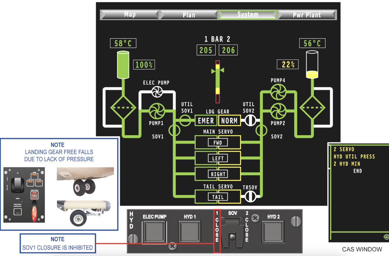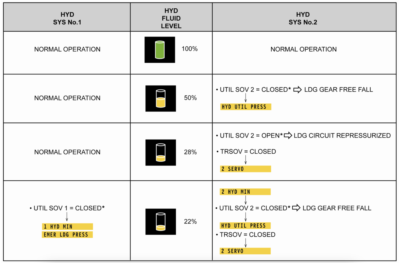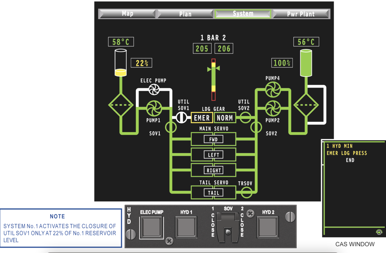 how to the Hydraulic system tries to protect itself if the hydraulic reservoirs are falling?