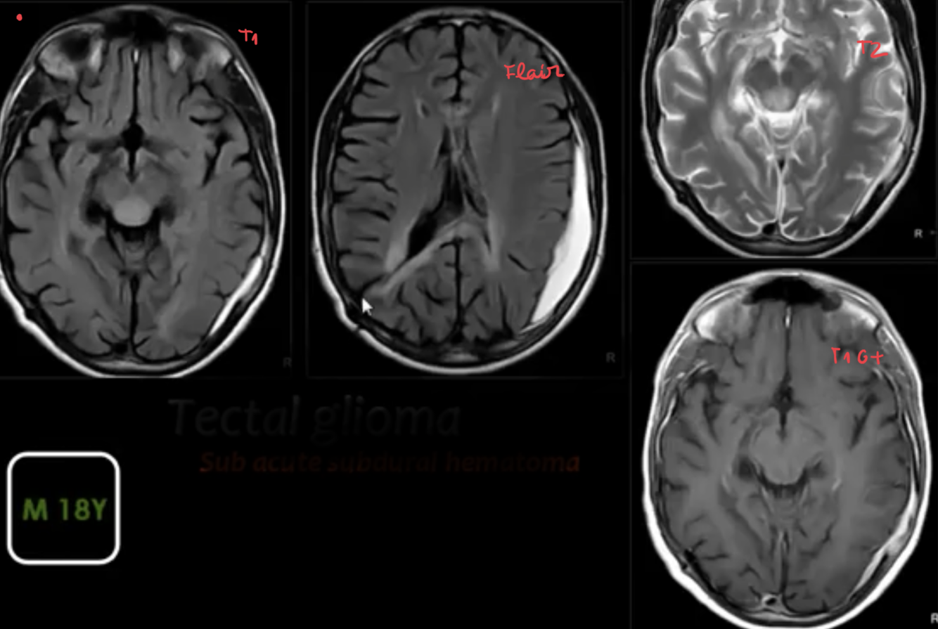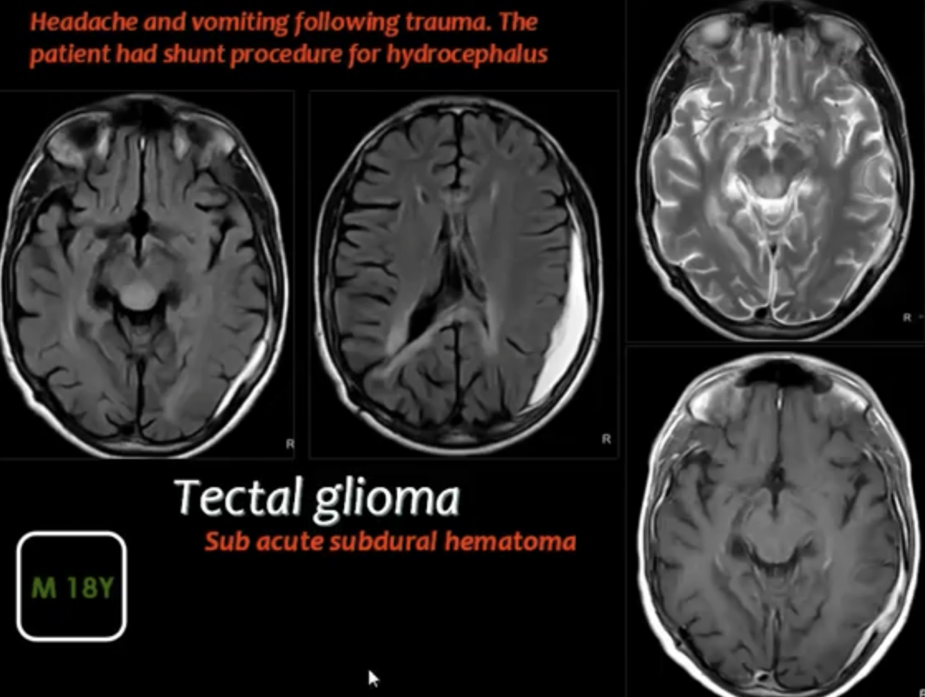 tectal plate glioma / pineal tumour / posterior fossa tumour / cerebral vascular malformation