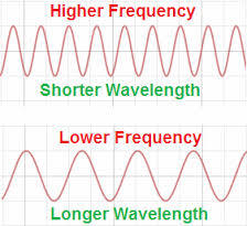 Shorter (smaller) wavelenth = higher frequency (high energy)