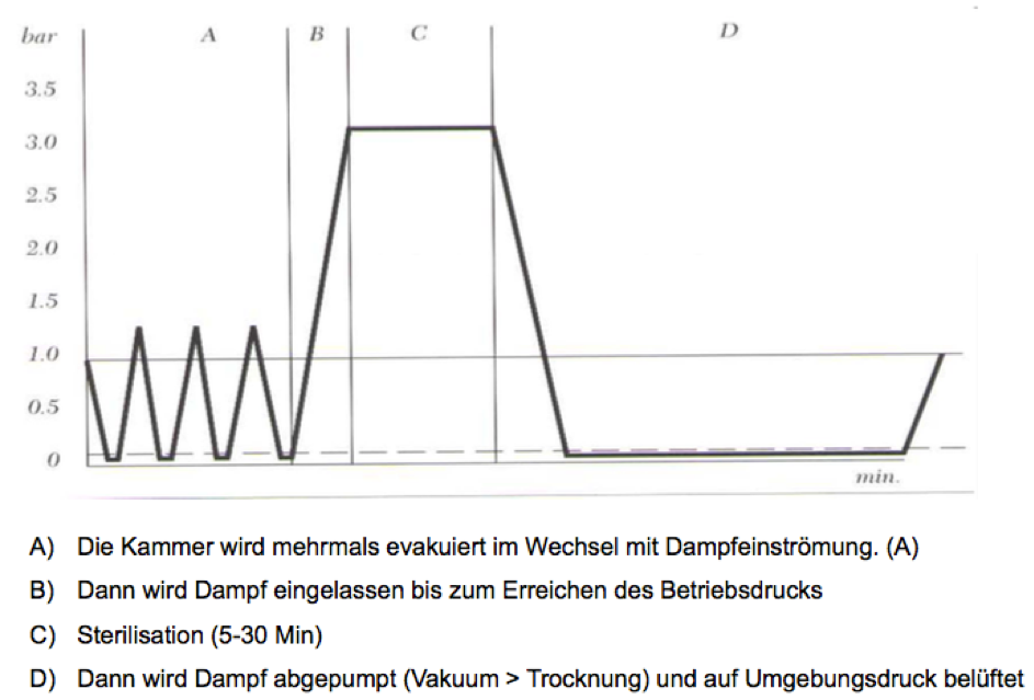 Erläutern Sie die Prozessparameter und die Wirkungsweise des Dampfsterilisierens