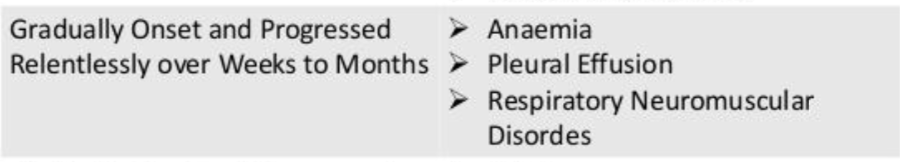 If a pt presents with gradually onset and progressed relentlessly over wks/months, what if your ddx?