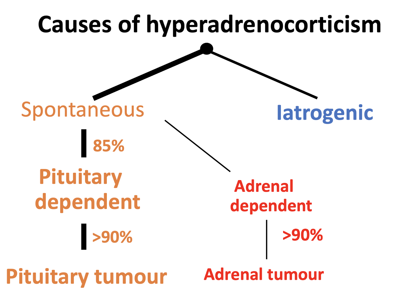Functional adrenocorticotropic hormone (ACTH) secreting pituitary tumour in approx. 85% of dogs