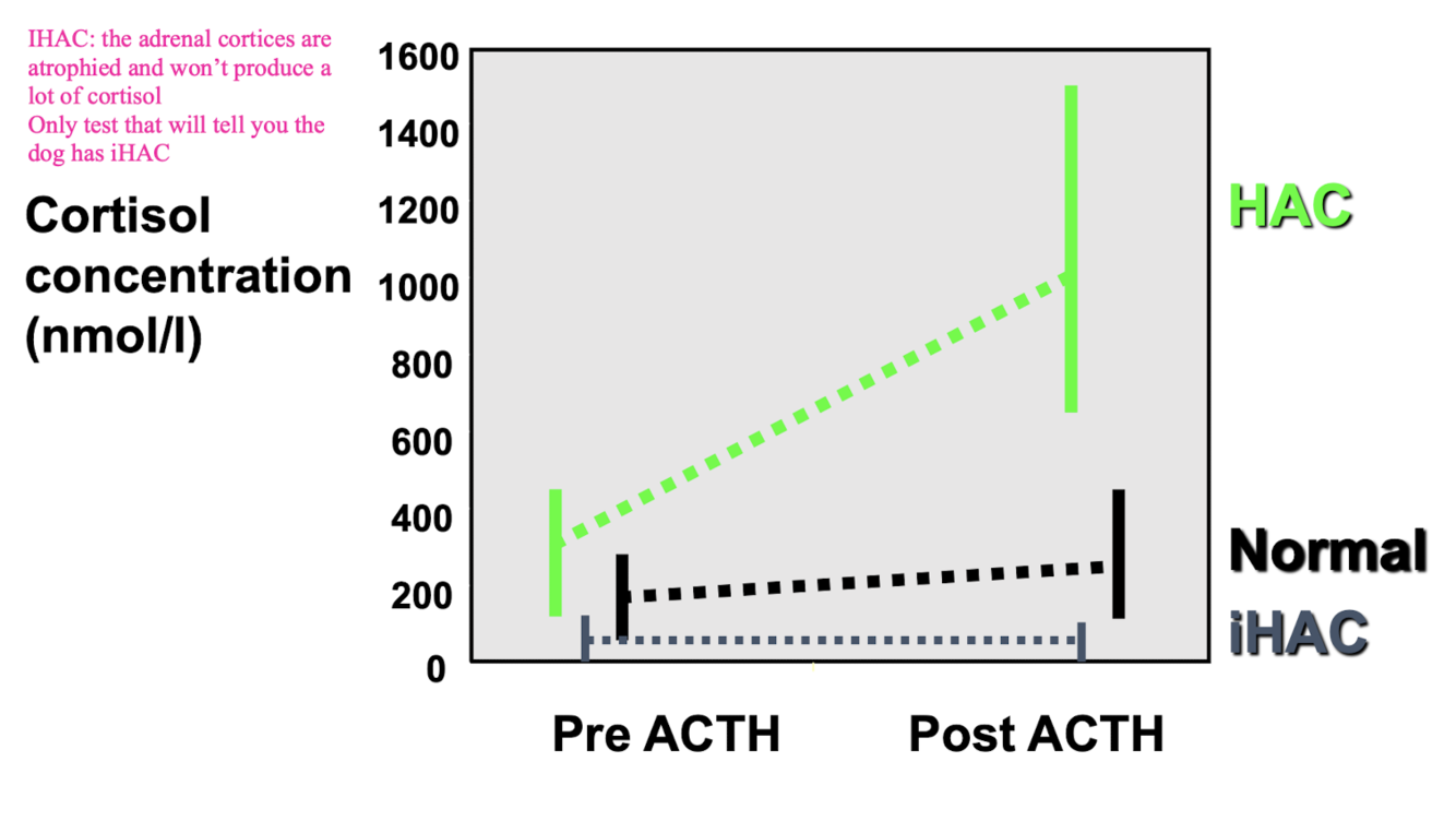 Dogs with hyperadrenocorticism have an increased post-ACTH admin cortisol increase