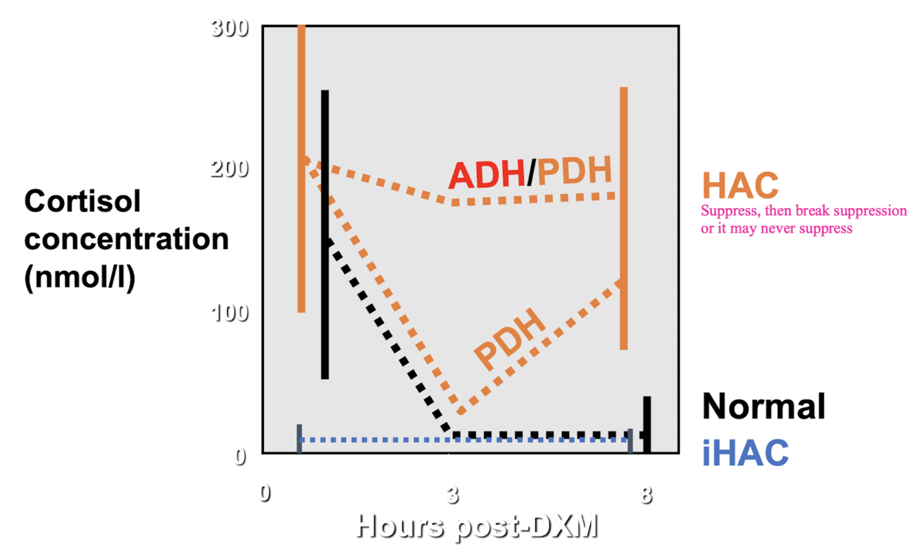 in an AD/PD-HAC dog dexamethasone will not suppress cortisol at all