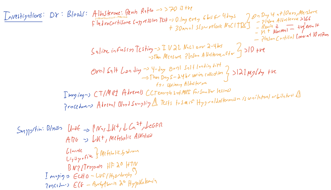 What are ALL the investigations for primary hyperaldosteronism?