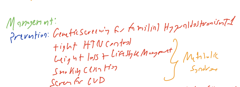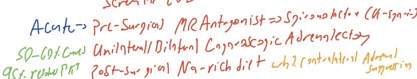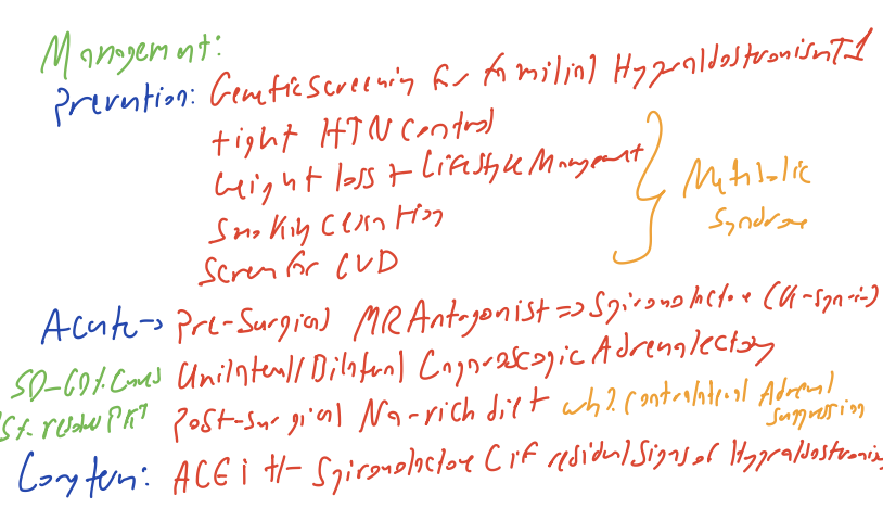 Outline the FULL management for primary hyperaldosteronism.
