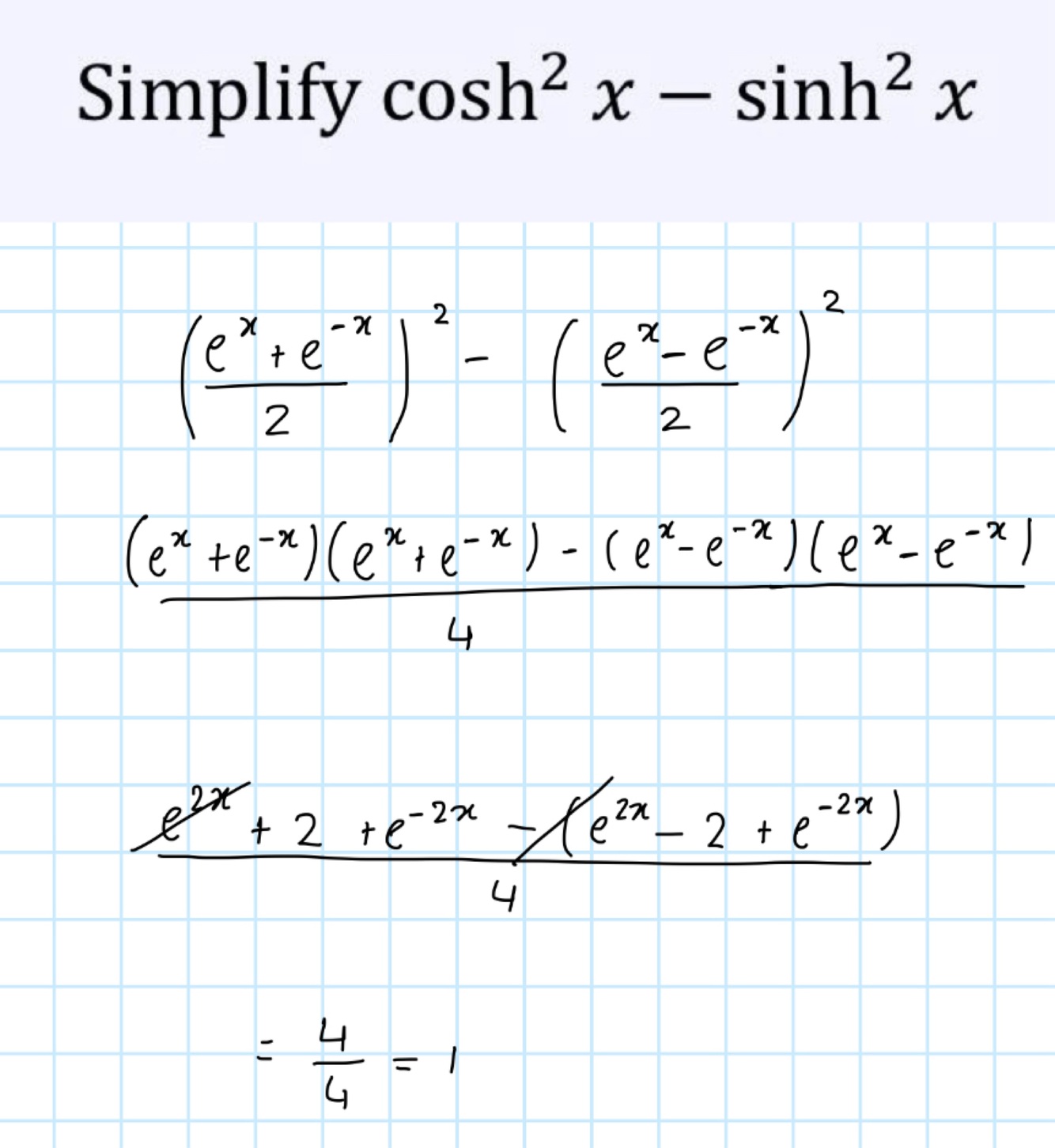 Aka hyperbolic identity for sin^2 + cos^2 = 1
