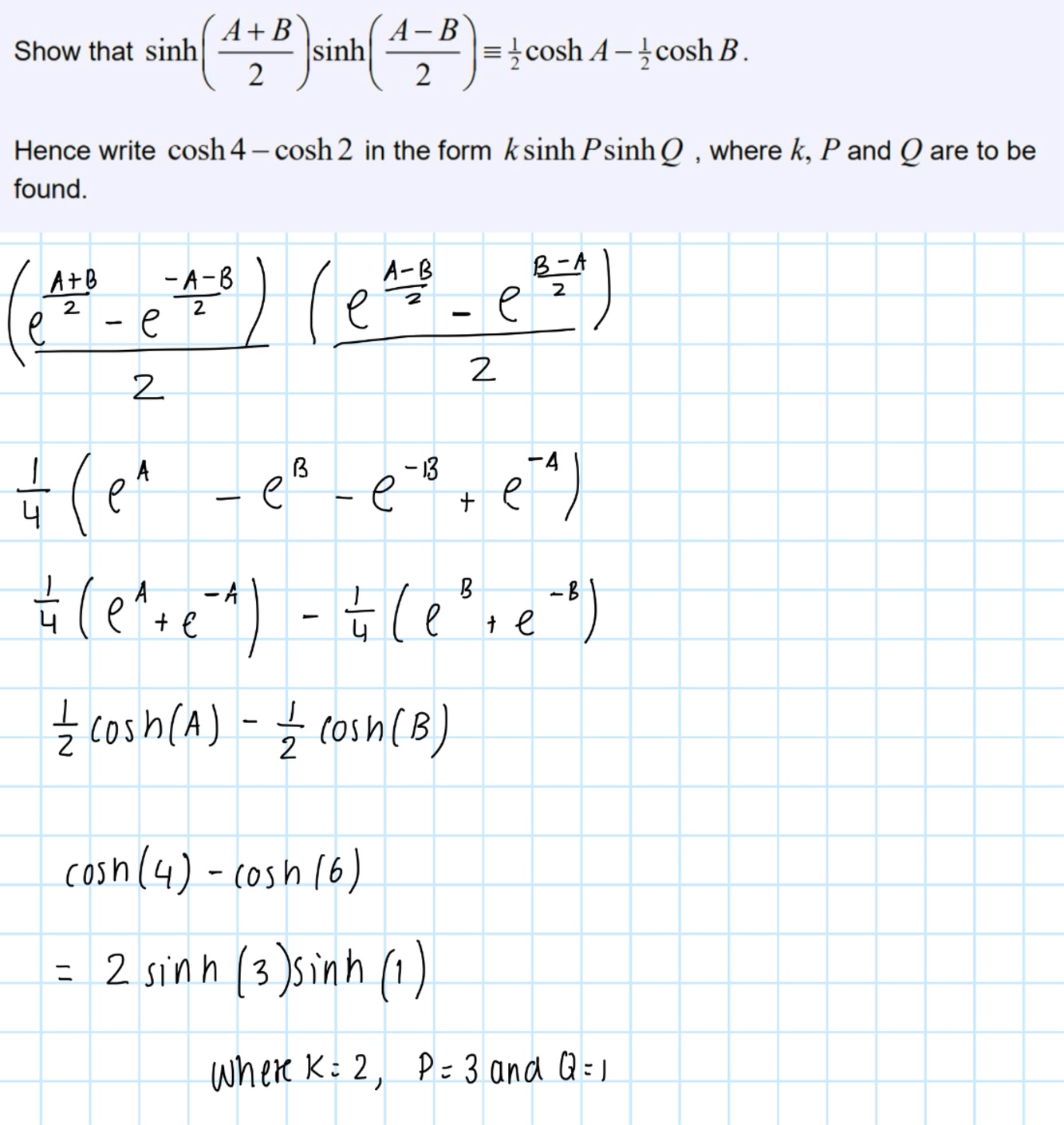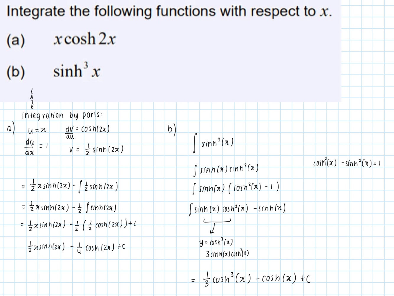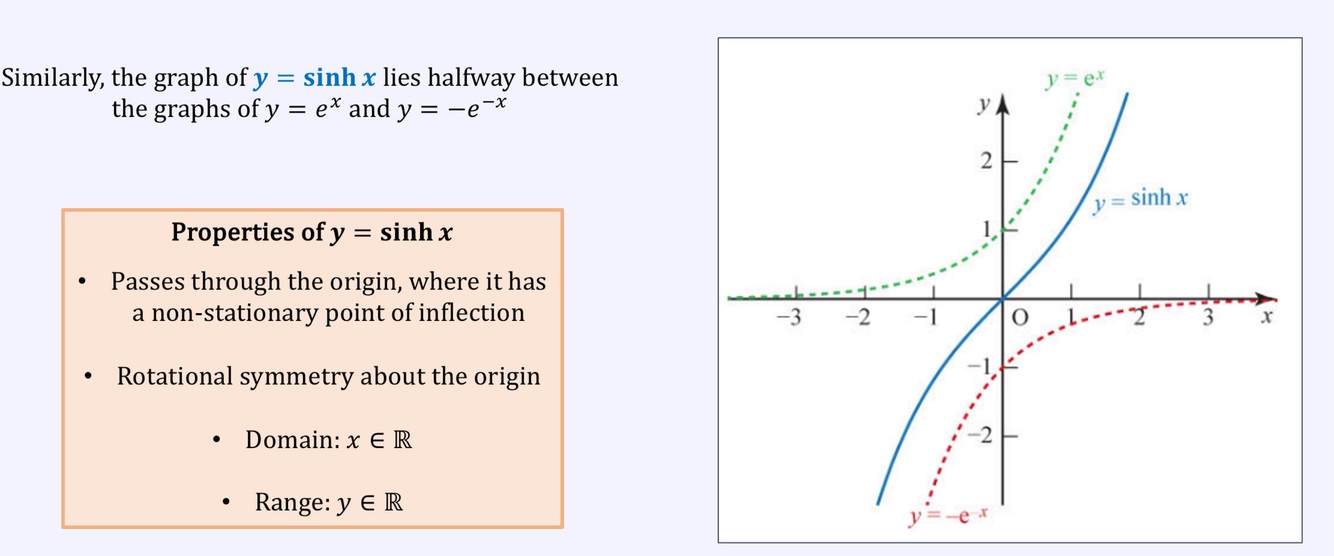 Draw the sinh(x) graph and what are the domain and range
