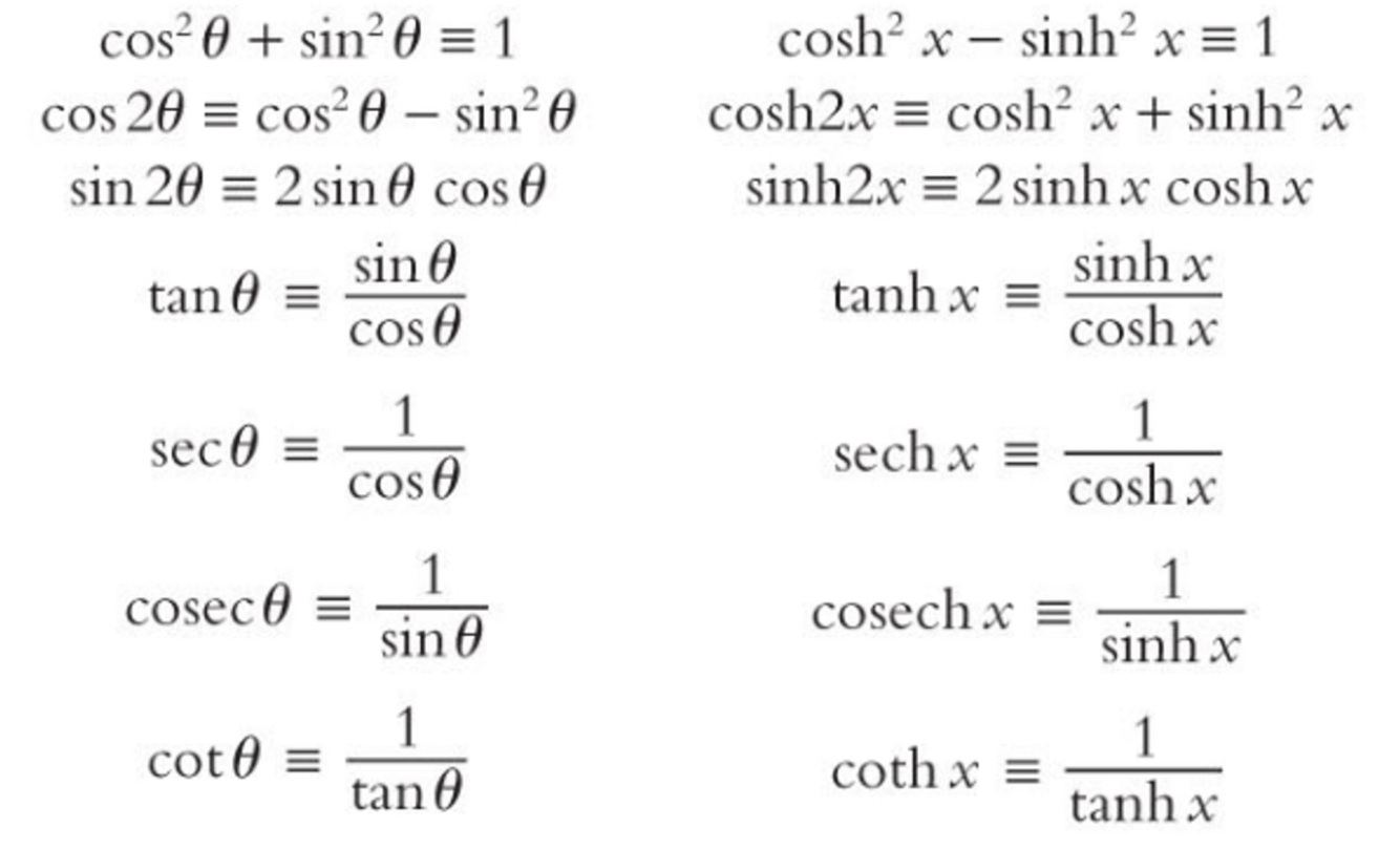 How are the following trigonometric identities shown as hyperbolic identities