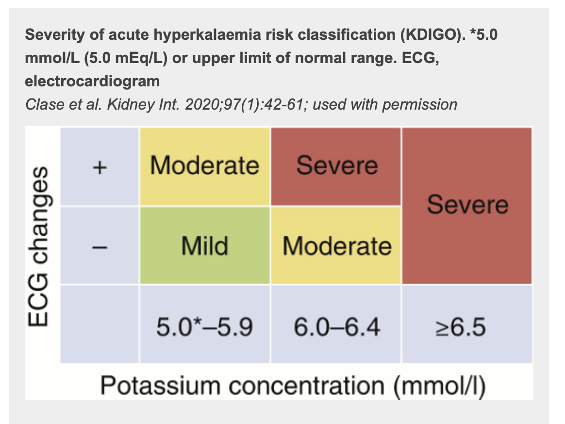 If acutely life-threatening, renal disease, rapidly rising (e.g. rhabdomyalisi) or refractory: haemodyalsis for Hyperkalaemia