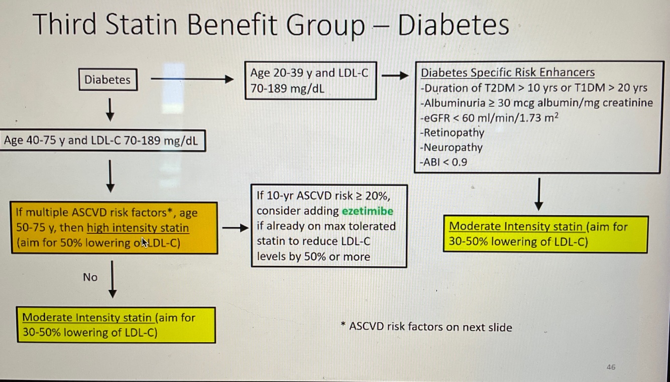 For pts with no DM LDL ≥ 70 to 189 mg/dl and ASCVD risk 7.5 - 20