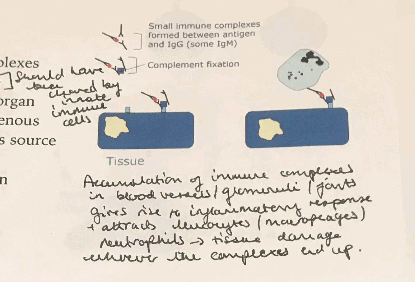 Outline how the antigens involved in Type II and Type III hypersensitivity differ?