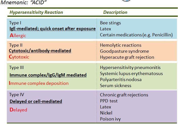 Types of hypersensitivity reaction