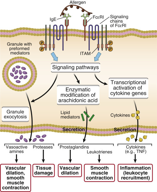 . . . IL-4 and TNF-α derived from mast cell degranulation.