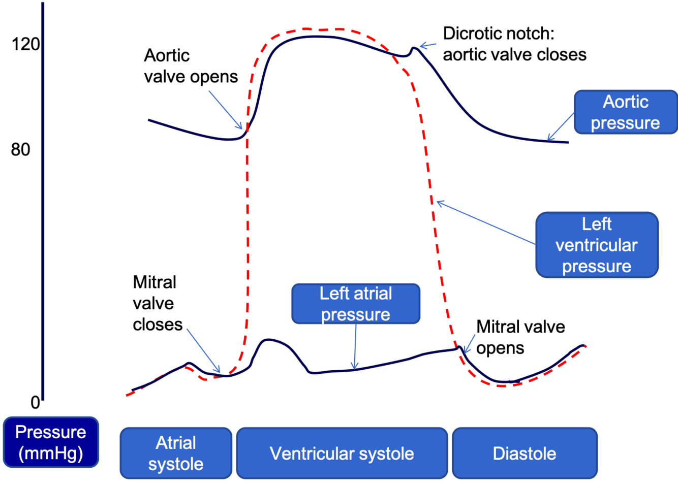 Diastolic: lower value as ventricles are not contracting but filling (resting)