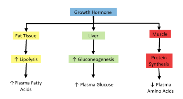 increases (growth hormone) meaning patients will have bigger appetites and a tendency to lose weight
