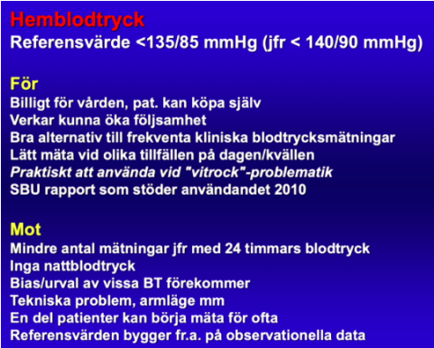 Vad är för- respektive nackdelar med hem-blodtryck? (3p)
