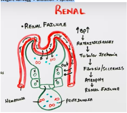 Små kärl i njurparenkymet som skadas. Detta skadar njurvävnaden -> mindre GFR vilket ökar RAAS