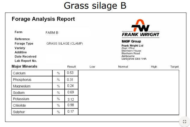 Grass silage has a high DCAB – high in calcium – not going to be good for reducing calcium intake