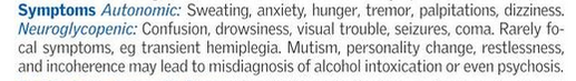 What are the main symptom/sign groupings of hypoglycaemia?